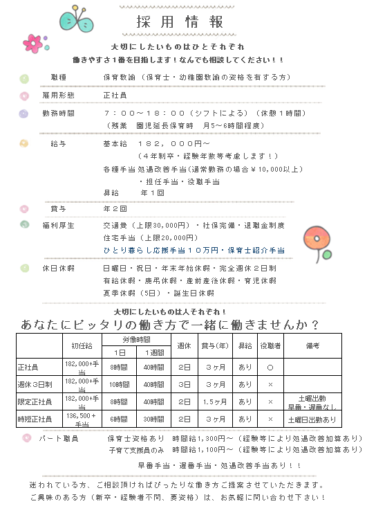 当園では色々な働き方がありますので、お問い合わせください😊